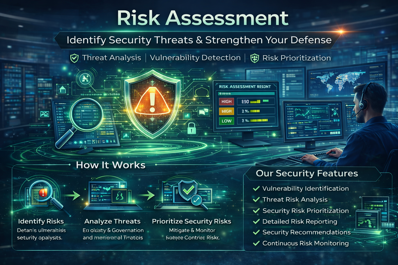 Cyber threats continue to evolve, making it essential for organizations to regularly evaluate their security posture. Our Risk Assessment process provides a structured approach to identifying, analyzing, and managing security risks.